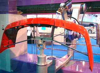 Robot arm for Bumper Pro - The coating material supply system has been established using a lot of experiences in the high-grade coating for mobile-phones or mobile-telecommunication devices. We are aiming reduction of waste coating materials and high-quality as well as low-current home electric appliances.