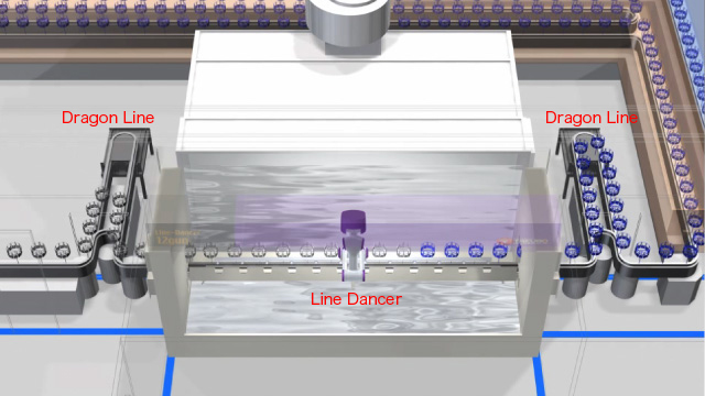 塗装ロボットの両左右に配置し、コンベアラインが滞留と放出する機構です。