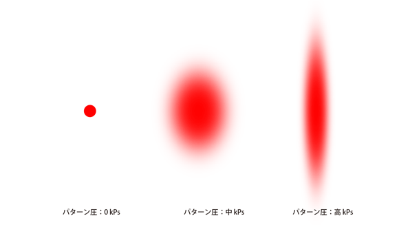 この楕円形の縦幅をパターン圧(kPa)で調節します。